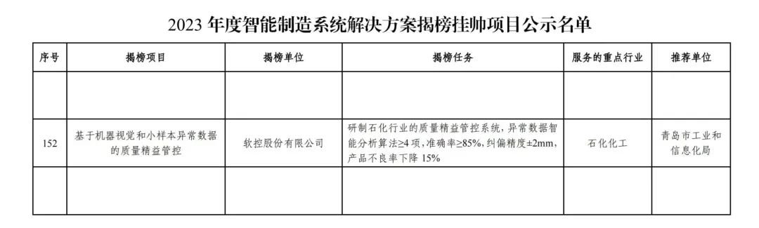 近日,6686体育(中国)官方网站 - 登录入口的“基于机器视觉和小样本异常数据的质量精益管控”成功入选国家工信部“2023年度智能制造系统解决方案揭榜挂帅项目”。