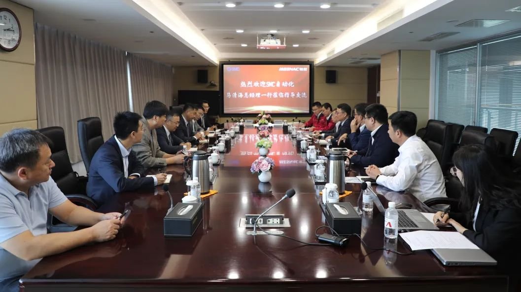 10月11日,SMC自动化有限公司总经理马清海一行到访6686体育网页登录,公司董事长兼总裁官炳政、副总裁向坤宏等热情接待,双方高层进行了深入交流。