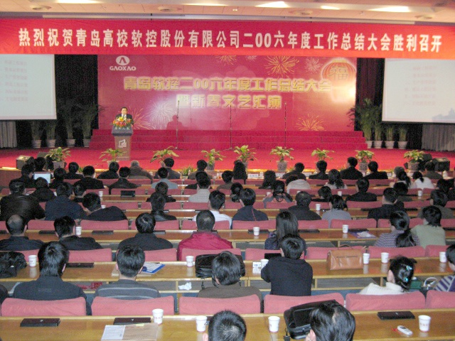 2月10日,公司2006年总结大会暨文艺汇演在青岛府新大厦隆重举行,公司各级领导、特邀嘉宾出席会议,700余名员工参加了会议。会议对2006年的企业运营情况进行了总结,并对新的一年工作进行了部署。会后,精彩的文艺汇演为人们奉献上了一台文化的盛宴。