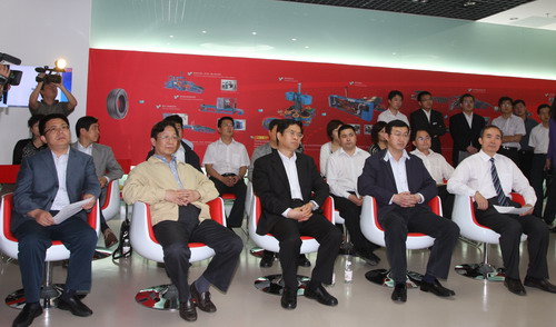 在公司信息化展厅,张焱首先向考察组介绍了产品研发、产业链发展模式及公司运营等方面的情况。随后,信息工程研究所副所长焦清国汇报了公司自主研发的MES系统以及物联网技术在轮胎企业中的应用。