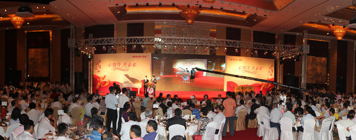 当晚,公司在香格里拉酒店举行了盛大的庆祝活动,由总裁高彦臣主持。董事长袁仲雪代表全体6686体育网页登录人发表感言。他指出,十年的时间,6686体育网页登录从最初1个项目部成长为1个拥有10个子公司的产业集团;从最初50万创业资金增长到如今市值突破150亿;从最初不足50人扩容到如今近3000人;从橡机行业世界排名百名开外上升到全球第4名;从最初的1个课题组发展成1个行业的国家工程技术中心;从最初的单一产品拓展到轮胎生产所需重大、关键装备系列化。而这些都得益于青岛科技大学、各级政府领导、各位用户、供应商、友商以及社会各界朋友的关心、支持与帮助;得益于全体6686体育网页登录人的执着追求、锐意创新与辛勤付出。