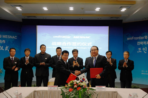 12月20日,6686体育网页登录与韩泰集团旗下emFrontier公司在青岛签署战略合作协议,双方将在IT解决方案、工厂自动化、物流自动化三个领域内展开深度合作,在全球范围内共同开发市场。