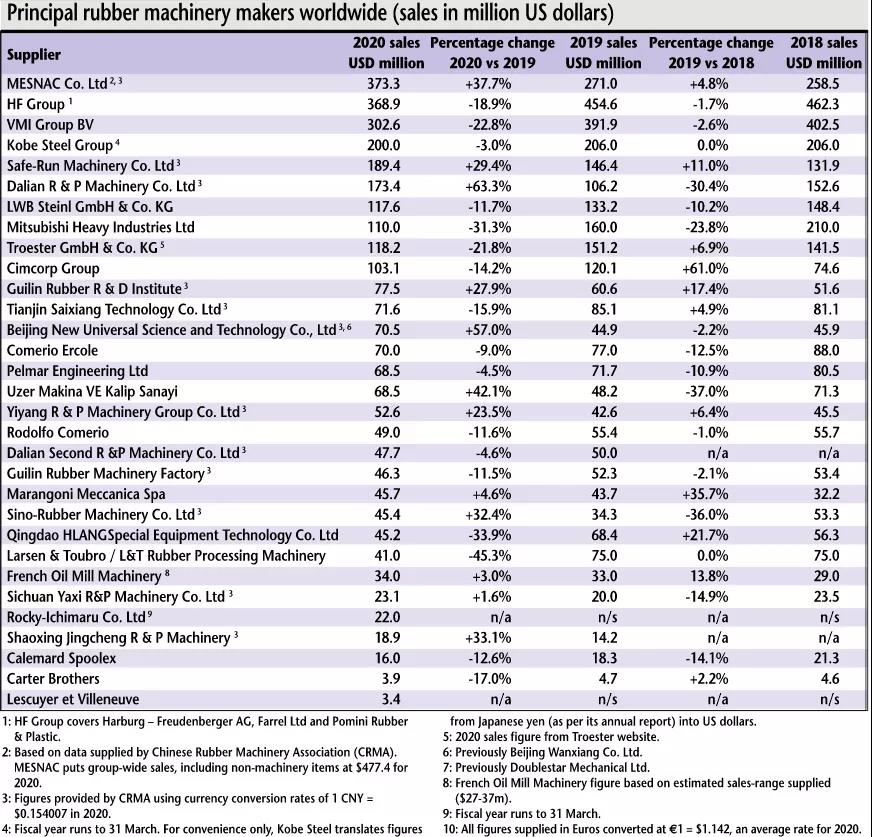 最新出版的欧洲橡胶杂志(European Rubber Journal) 5/6月刊更新了2020年全球橡胶机械行业企业的销售收入排名,6686体育网页登录(MESNAC)位居第一。